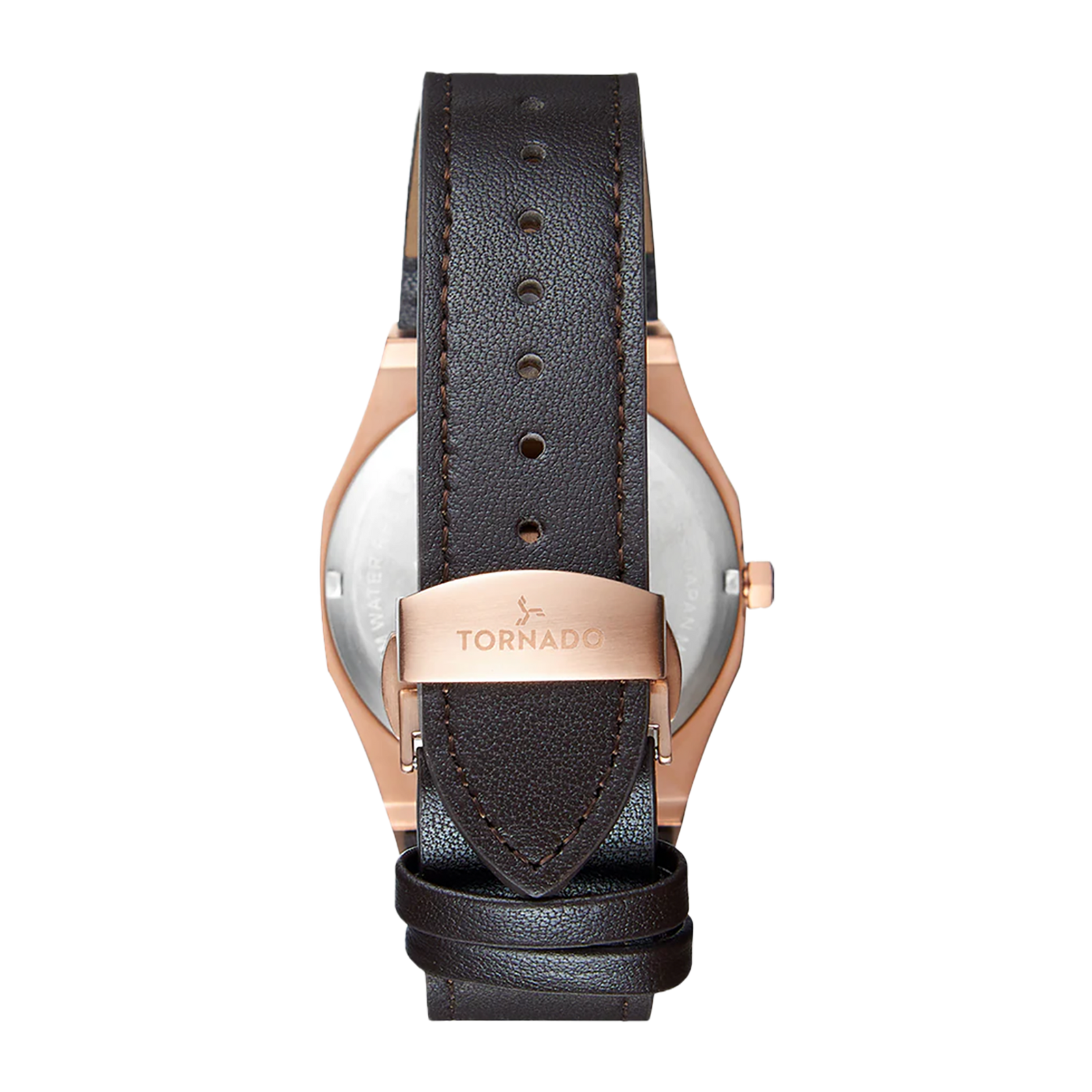 The Tornado SPECTRA in rose gold presents a warmer, more refined expression of the collection. The 40 mm case is crafted from solid 316L stainless steel and finished in rose gold. Its round case is defined by an octagonal bezel that adds structure without overwhelming the proportions. A black dial with horizontal stripes provides contrast and depth, complemented by luminous hands and index markers for low light readability, and an integrated date display at three o’clock. Sapphire-coated glass protects the dial, maintaining clarity through regular wear.The watch is paired with a brown genuine leather strap that secures with a butterfly clasp for a smooth, balanced fit. Inside, the Japanese Miyota GM10 quartz movement delivers dependable accuracy. Rated to 10 ATM and backed by a three-year warranty, the SPECTRA offers a polished, versatile option suited to both daily wear and formal settings.