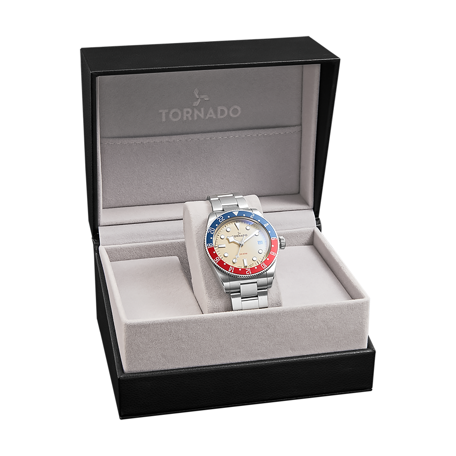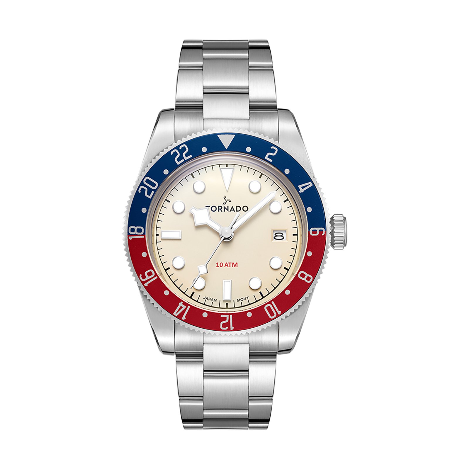 The LUMINA DATE in ivory shifts the character of the collection toward something lighter. The sand-textured dial is the focus here, its soft, matte surface reducing glare while giving the colour a calm, serene presence. Luminous markers and hands sit cleanly against the dial, with the date window at three o’clock kept unobtrusive. At 40 mm, the case stays compact and well judged. Solid 316L stainless steel with a vertical brushed finish gives the watch a restrained, utilitarian edge, balanced by a unidirectional red/blue bi-colour aluminium bezel that introduces contrast without distraction. Sapphire-coated glass keeps the dial crisp, preserving the clarity of the texture beneath. The stainless-steel bracelet continues the brushed finish closes with a butterfly buckle for a clean fit. With a slim 9 mm profile and the dependable Miyota 2315-3H quartz movement inside, this version of the Lumina Date feels precise, composed, and quietly distinctive.