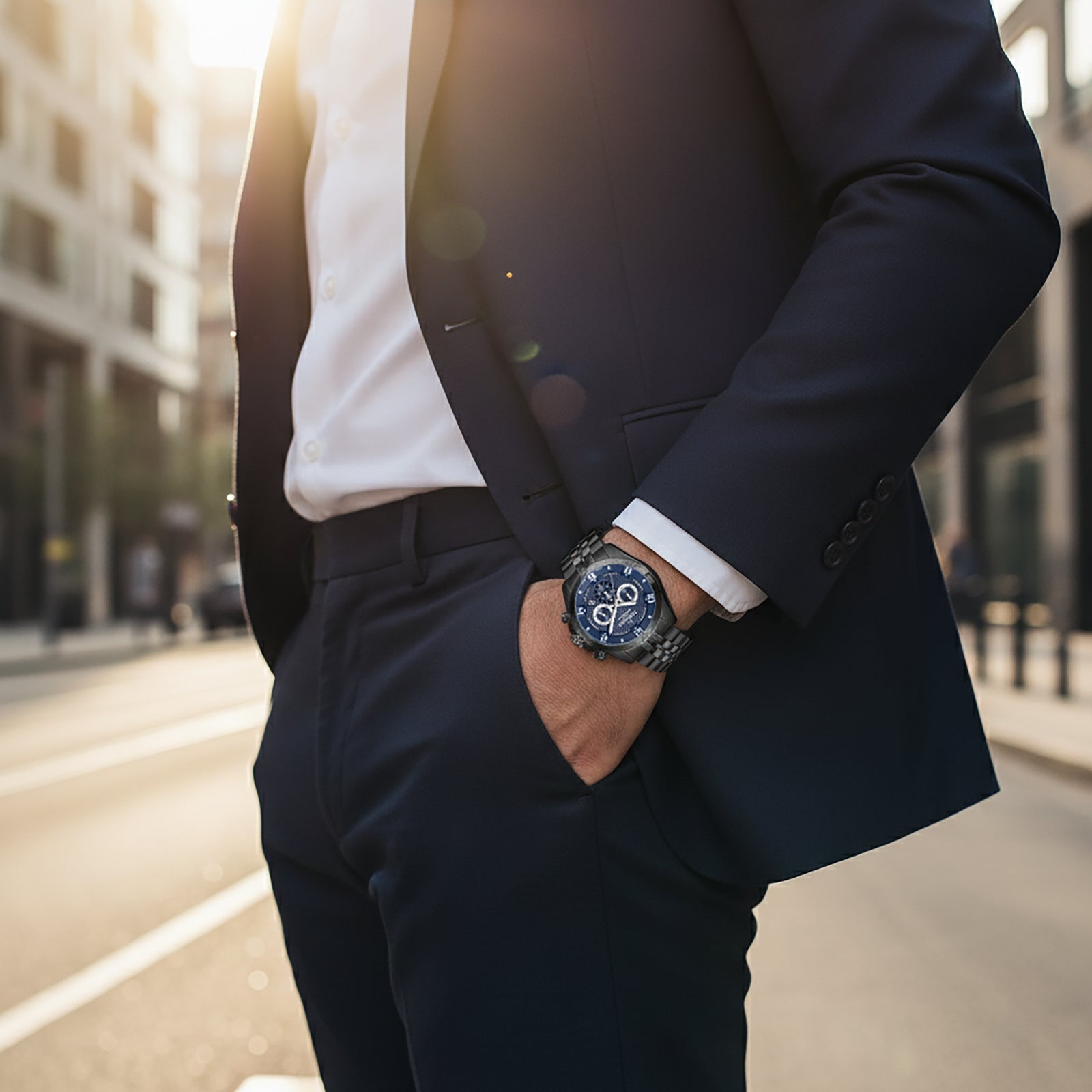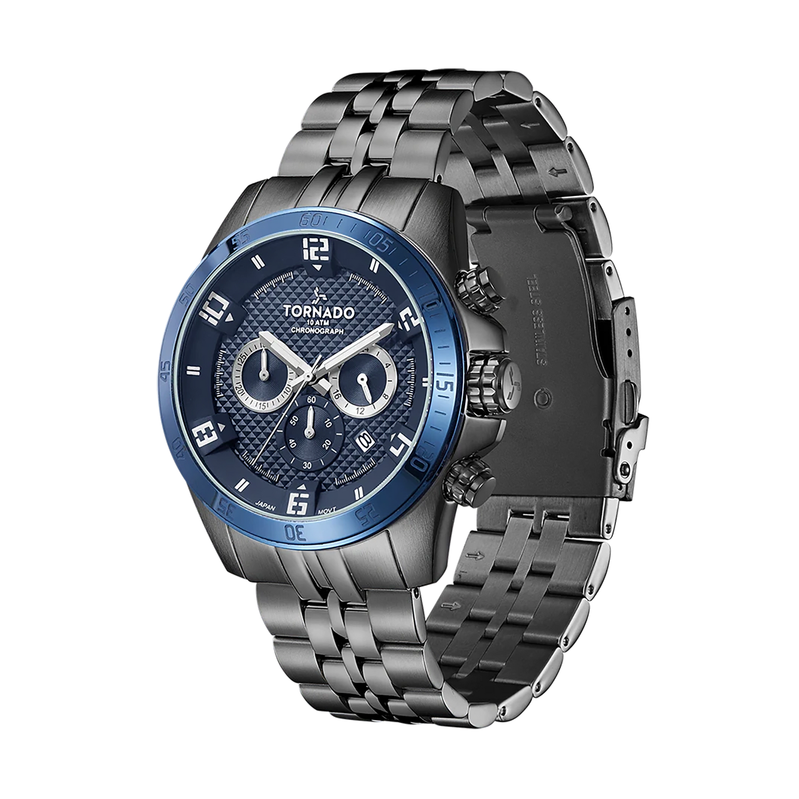 Tornado Celestia Chrono Men's Chronograph Watch with blue dial, gunmetal case and strap. Japan Quartz movement, sapphire coated glass, 10ATM water resistant. 3-year warranty included.
