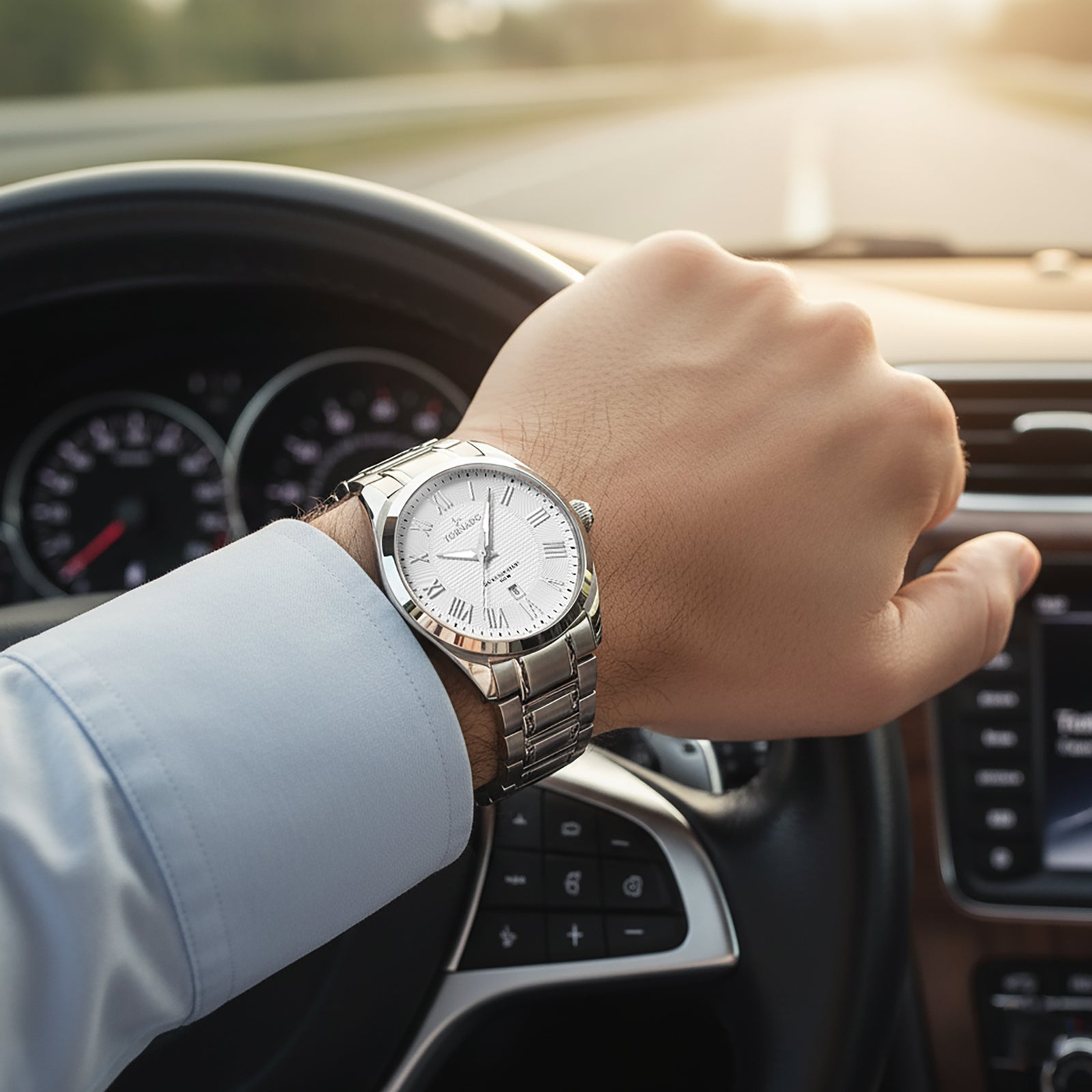Tornado Celestia Classic's Analog Watch with white dial, silver case and strap. Japan Quartz movement, sapphire coated glass, 10ATM water resistant. 3-year warranty included.