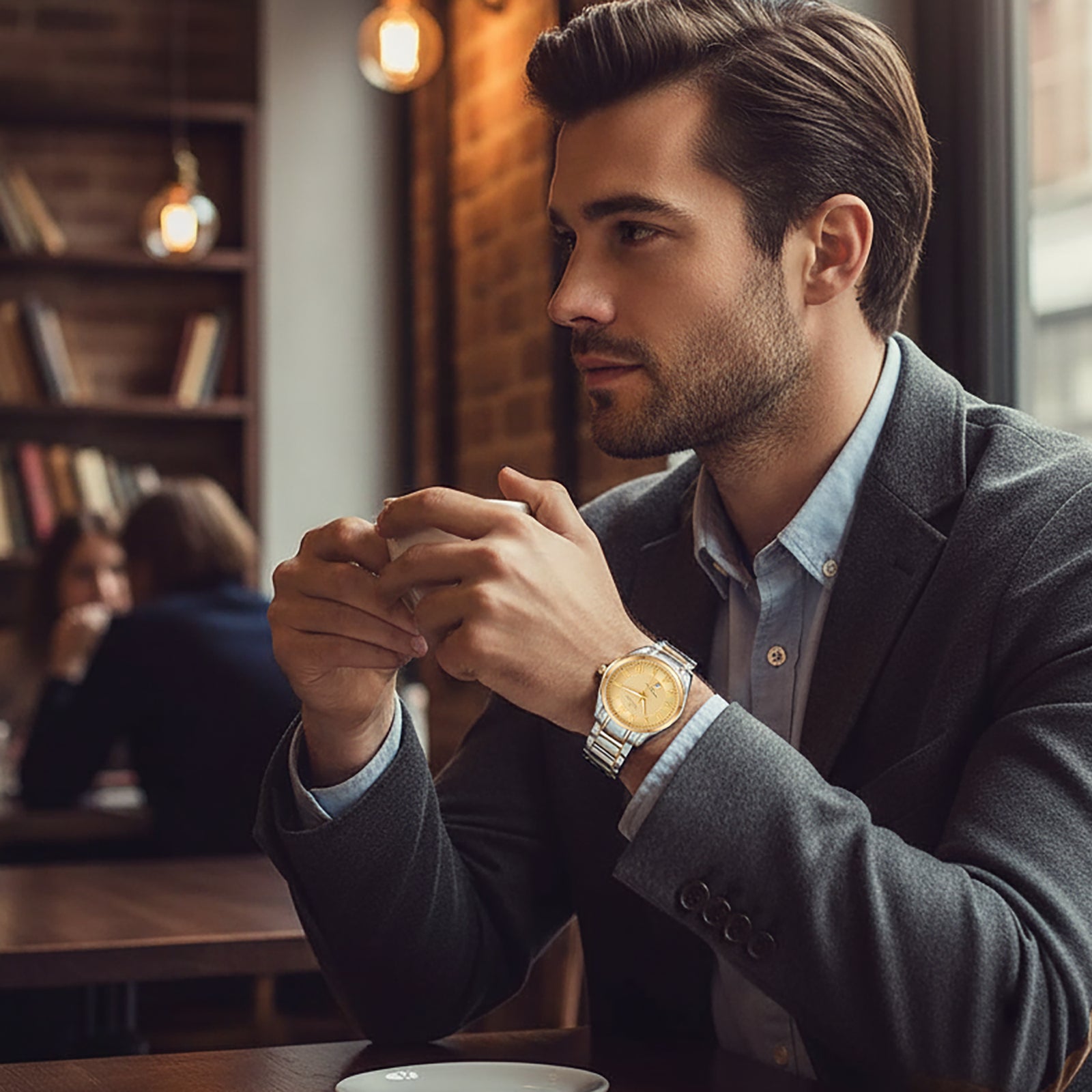 Tornado Celestia Classic's Analog Watch with beige dial, silver/gold case and strap. Japan Quartz movement, mineral glass, 5ATM water resistant. 3-year warranty included.